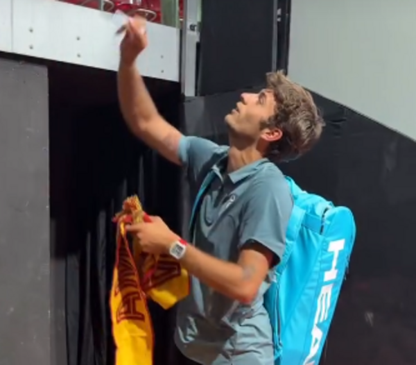 Flavio Cobolli , noto tifoso della Roma e numero 13 del ranking ATP, in questi giorni è impegnato nel master 1000 di Madrid . Il tennista romanista, dopo la vittoria contro Medvedev , si è fermato con un tifoso che dagli spalti gli ha lanciato una sciarpa giallorossa per autografarla.