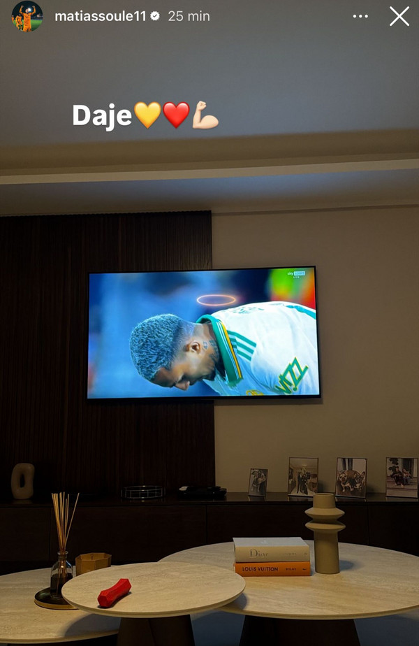 Mentre la Roma è impegnata sul campo del Bologna per giocare l'andata dell'ottavo di finale di Europa League , Matias Soulé fa il tifo da casa. L'argentino sta cercando di recuperare dalla pubalgia che lo ha colpito circa 3 settimane fa e la sua ultima apparizione in campo risale al match contro il Napoli . L'ex Juventus tramite il suo account Instagram ha pubblicato una storia a casa sua mentre guarda la partita: "Daje" .