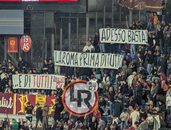 Successivamente è apparso un altro striscione con un messaggio chiarissimo: "Proprietà muta, dirigenza chiacchierona: chi pensa al bene della nostra Roma?" .